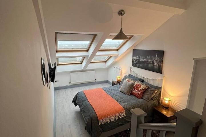 - 5% OFF on 3 night stay- 7% OFF on 4 night stay- 15% OFF on 7 nights & longer- 25% OFF on 28 nights & longer- Sleeps up to 6 guests- Bedroom 1 (1x Double Bed & en-suite)- Bedroom 2 (1x Double Bed & en-suite)- Living Room (1x Sofa Bed)- Separate WC- Professionally Cleaned- Netflix included- 65 inch Smart TV- Free wifi- Fully Equipped Kitchen- No LiftThe town centre with numerous shops, restaurants, pubs, cinema and the railway station is all within walking distanceThe spaceFirst floor centrally located moroccan inspired modern apartment only 1 min walk to town centre. There ...